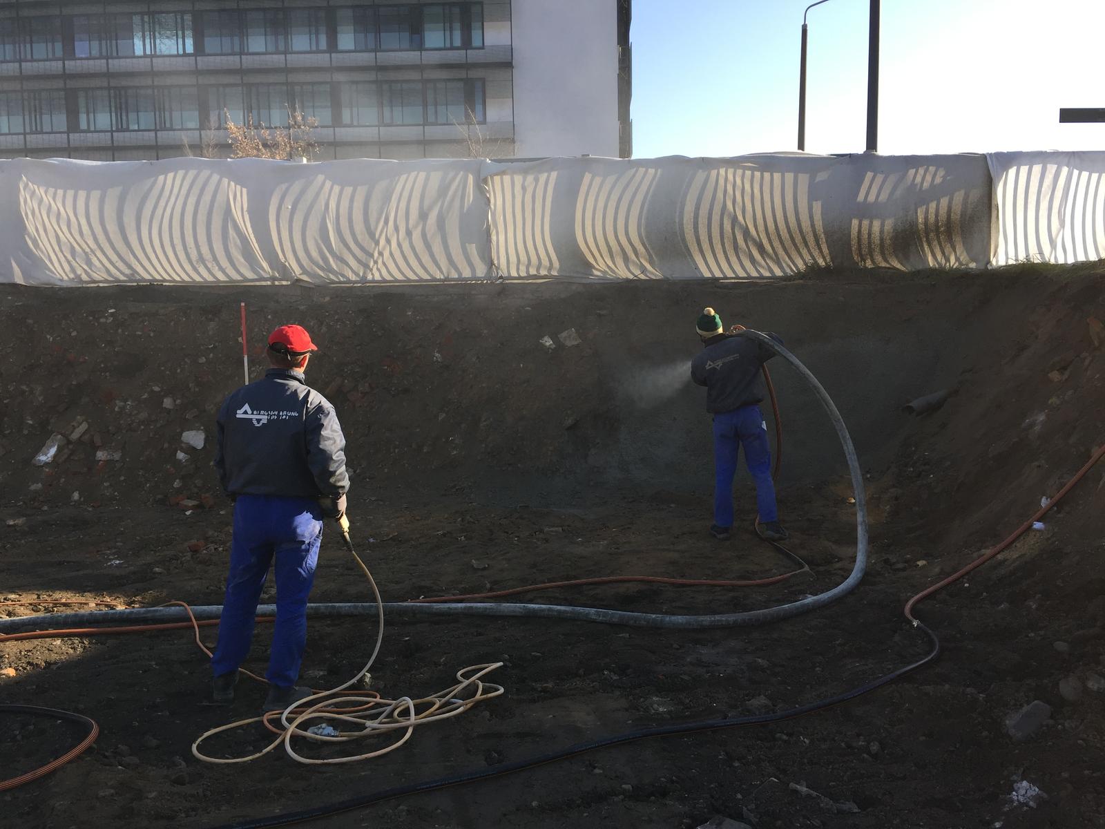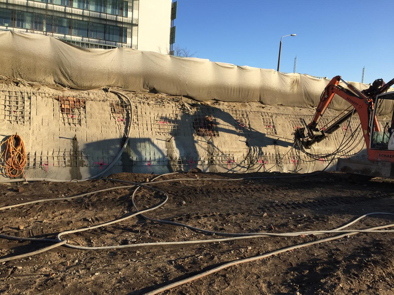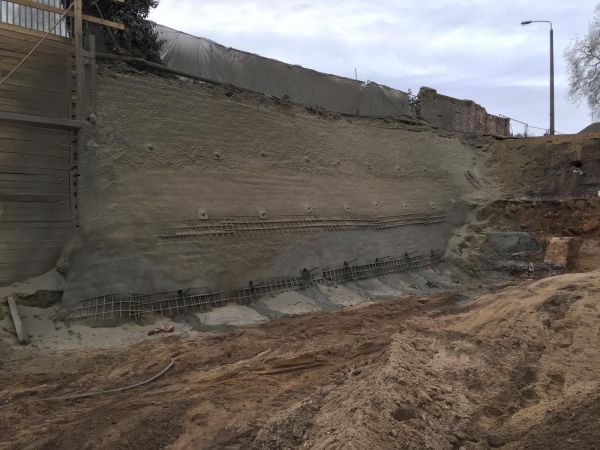 Sicherung Baugrube, Lieferung und Einbau von Spritzbeton und Nägeln